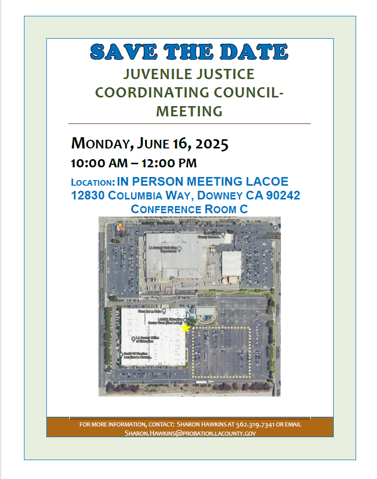 The Juvenile Justice Coordinating Council’s Community Advisory Committee (JJCC-CAC) is seeking input from stakeholders connected to or impacted by the juvenile justice system (e.g. community members, governmental agencies, and community-based organizations) about the unmet needs of justice-involved and at-risk youth in the County of Los Angeles, as well as the most promising project and programs that do or could serve them. This information will help the JJCC in its annual update of the Comprehensive Multi-Agency Juvenile Justice Plan (CMJJP), including understanding how resources may better support young people and close gaps in the services provided to them.